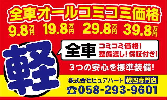 株式会社ピュアハートでは、お客様と対応させていただくすべての営業スタッフが、中古自動車販売士の資格を有しておりますので安心してご購入いただけます。